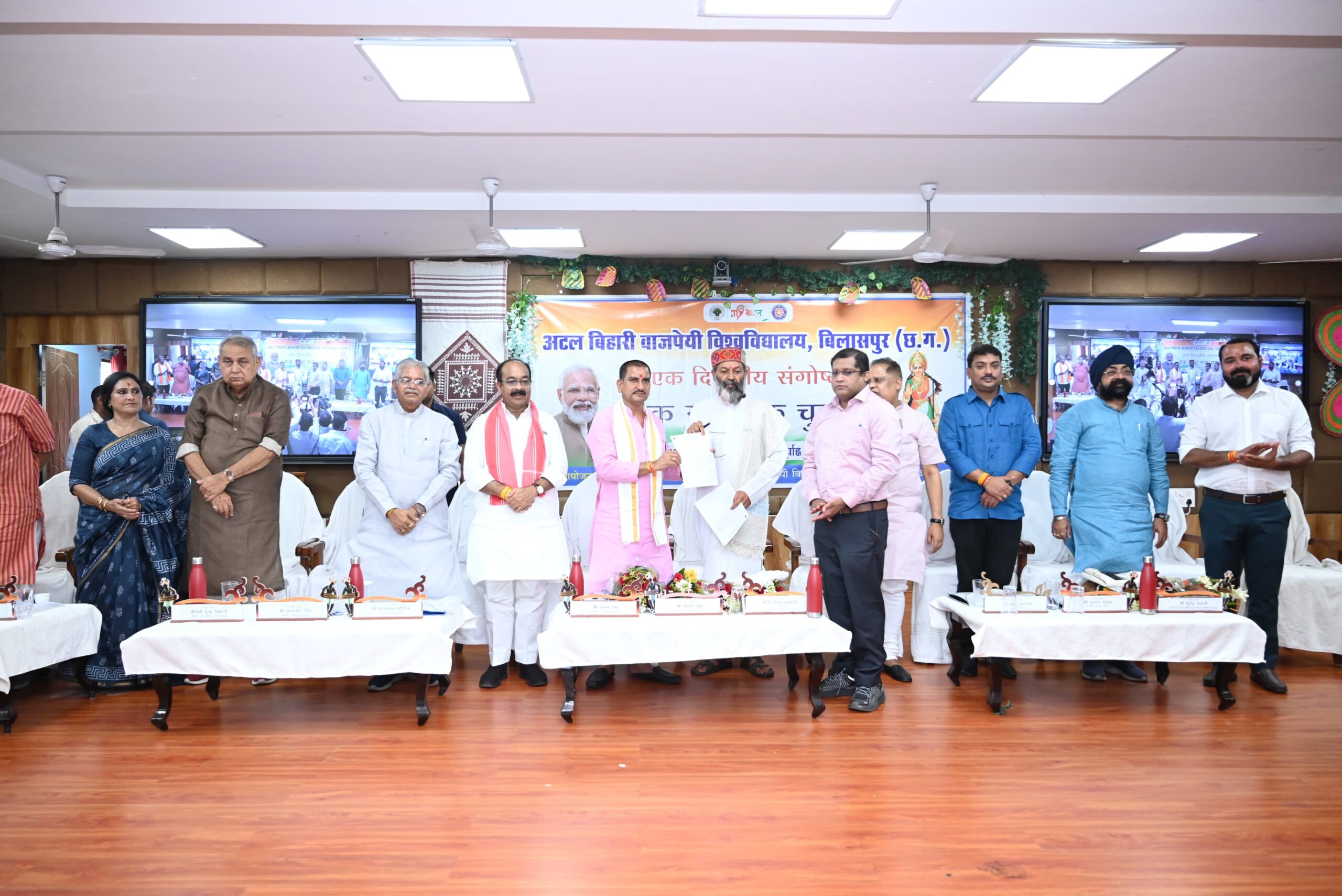 बिलासपुर।भारत सरकार के आवासन एवं शहरी कार्य राज्य मंत्री श्री तोखन साहू अटल बिहारी वाजपेयी विश्वविद्यालय, कोनी (बिलासपुर) में आयोजित ‘एक राष्ट्र–एक चुनाव’ में शामिल हुए। इस अवसर पर विश्वविद्यालय द्वारा ‘एक राष्ट्र–एक चुनाव’ के समर्थन में सर्वसम्मति से प्रस्ताव पारित किया गया। साथ ही विश्वविद्यालय परिसर में “कन्हार: छत्तीसगढ़ की माटी” नामक मासिक पत्रिका का विमोचन भी किया गया।